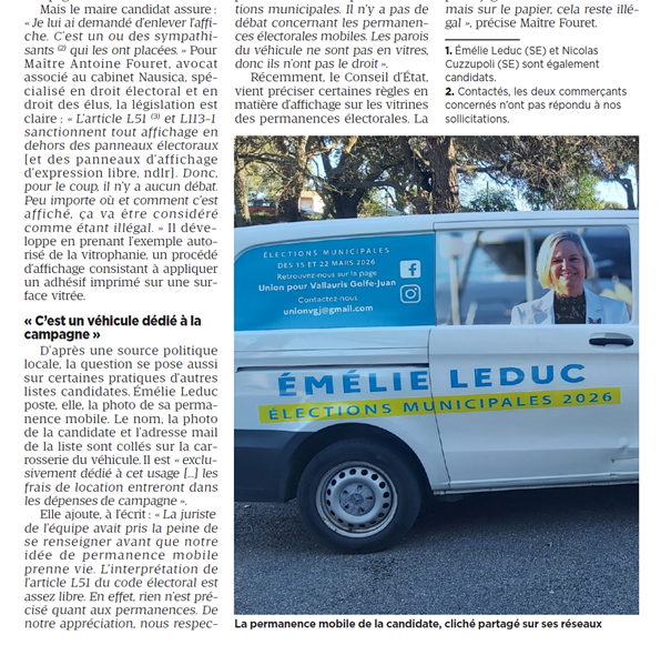 Me Antoine Fouret a eu l’occasion de revenir sur la règlementation électorale concernant la propagande et la permance des candidats, notamment concernant le cas des permanences mobiles. droit électoral, élections municipales 2026, permanence, propagande, protestation électorale, vitrophanie
